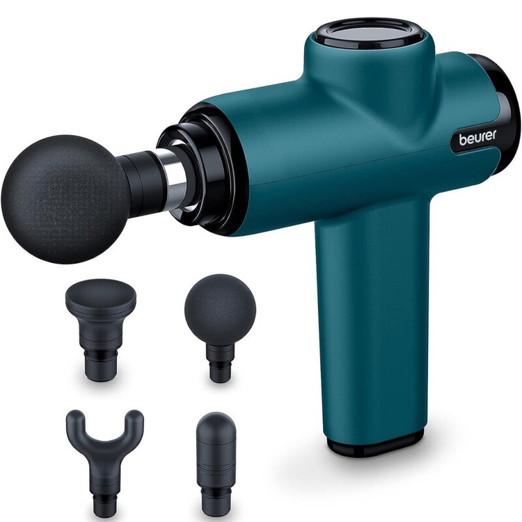 تفنگ ماساژ جمع و جور Beurer MG99، مینی ماساژور بافت عمیق با 4 اتصال، ماساژ قوی نقطه ماشه ای برای رفع تنش، ماساژور دستی با 5 سطح شدت، باتری قابل شارژ