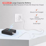 [عملکرد پاور بانک 5000 میلی آمپری] این جوشکار نقطه ای باتری های قابل شارژ 5000 میلی آمپری داخلی را می توان در عرض 2 ساعت به طور کامل شارژ کرد. جوشکار نقطه ای برای باتری های 18650 از استفاده در حین شارژ پشتیبانی می کند و برای دستیابی به بهترین اثر جوشکاری، سطح باتری را در هر بار 50 درصد حفظ می کند. طراحی رابط ورودی نوع C، خروجی USB، عملکرد شارژ سریع، جریان خروجی 2.4A، قابل استفاده به عنوان پاوربانک و دستگاه جوش نقطه ای در یک دستگاه