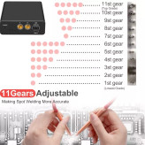 [11 چرخ دنده قابل تنظیم]: این تجهیزات جوشکاری نقطه ای کوچک با توان خروجی 11 دنده قابل تنظیم، از حالت های خودکار پشتیبانی می کند. از جوشکاری ورق نیکل 0.1-0.2 میلی متری و ورق فولادی 0.1-0.15 میلی متری پشتیبانی می کند، تنظیمات بسیار خوب می تواند جوشکاری را دقیق تر و اثر جوش نقطه ای را کامل تر کند. چراغ نشانگر LED برای شناسایی تغییرات تنظیم دنده، وضعیت شارژ و تغییرات سطح باتری بسیار آسان است