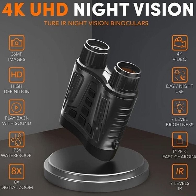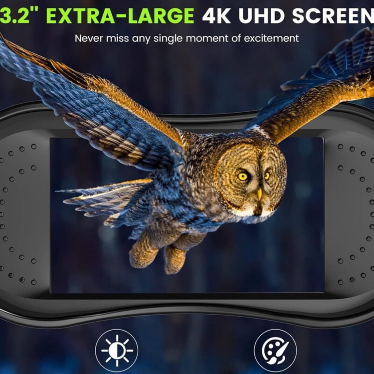 بینایی خود را در تاریکی کامل تقویت کنید: عینک دید در شب مجهز به سنسور CMOS درجه نور ستاره و روشنگر مادون قرمز 850 نانومتری است که به شما امکان می دهد حیوانات یا گیاهان را به وضوح در تاریکی 100٪ یا نور کم محیط ببینید. با این دوربین دوچشمی دید در شب 4k، میتوانید ویدیوهای UHD 4K و عکسهای 36 بعد از ظهر در روز، نور کم یا شب بگیرید. بسیار ضروری و ایده آل برای مشاهده حیات وحش و نظارت بر حیاط خلوت.