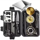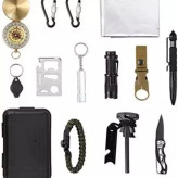 کیت بقای حرفه ای 13 در 1 ابزار چندگانه شامل: سنگ چخماق، خراش، خودکار تنگستن اضطراری، پتوی حرارتی، چراغ قوه (با باتری نیست)، قطب نما، مینی نور، چاقو، کارت سابر، سوت، گیره ضد ضربه، هدیه برای ماجراجویان در فضای باز، پرسنل نظامی، چادرنشینان، کوهنوردان، شکارچیان