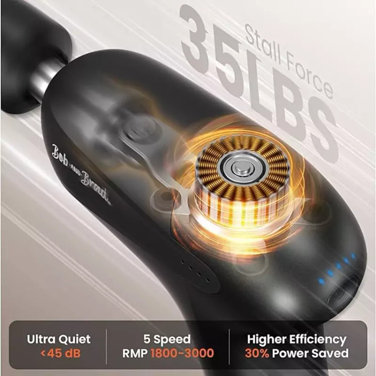 تفنگ ماساژ سخت نیروی نیمکتی تا 35 کیلوگرم را فراهم می کند و با 5 سرعت از 1800 تا 3000 دور در دقیقه عرضه می شود.