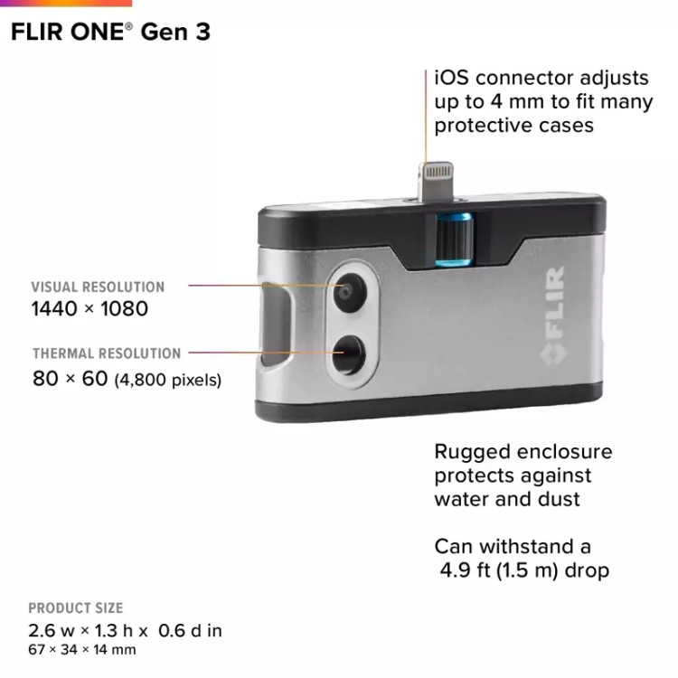 توضیحات بیشتر - دوربین تصویربرداری حرارتی برای گوشیهای هوشمند iOS (فقط آیفون با پورت لایتنینگ) برجسته ترین ها نام تجاری FLIR ویژگی ویژه دقت بالا رنگ مشکی/نقره ای محدوده سنی (توضیحات) بزرگسال اجزای شامل دوربین/آداپتور تصویربرداری حرارتی مواد بیرونی فلز سازگاری - دوربین مادون قرمز نسل 3 به همه دستگاه های iOS با پورت لایتنینگ متصل می شود. توجه: با iPhone 15 به بعد با USB-C سازگار نیست. برای آیفون 15 و جدیدتر به FLIR ONE Edge یا Edge Pro مراجعه کنید تصاویر واضح - تصاویر IR با وضوح بالا با وضوح تصویری 1440x1080 و وضوح حرارتی 80x60 دقت - زمانی که دستگاه بین 15 تا 35 درجه سانتیگراد و صحنه بین 5 تا 120 درجه سانتیگراد است، دما را در 3± درجه سانتیگراد یا 5± درصد اندازه گیری می کند. FLIR IGNITE CLOUD - تصاویر را مستقیماً از دوربین FLIR متصل به Wi-Fi خود آپلود، سازماندهی و به اشتراک بگذارید. 2-10 گارانتی دوربین حرارتی FLIR، 2 سال پوشش قطعات و کار روی دوربین، 10 سال پوشش روی آشکارساز - حیاتی ترین بخش کل دوربین.