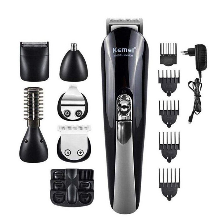 تکنولوژی اصلاح: برش مستقیم جنس تیغه: تیتانیوم پیشرفته اندازه اصلاح: 0.1 تا 12 میلیمتر قابلیت اصلاح با شماره صفر: دارد قابلیت خط زن: دارد تیغه های خود تیز شونده: دارد ضد آب (قابلیت استفاده زیر دوش): ندارد استفاده به صورت خشک و مرطوب: ندارد قابلیت شستشو: ندارد سر قابل شستشو: ندارد مدت شارژ کامل: 120 دقیقه مدت استفاده پس از شارژ: 120 دقیقه امکان شارژ شدن سریع: دارد مدت شارژ سریع: 30 دقیقه منبع تغذیه: باتری قابل شارژ(بی سیم) استند شارژ: دارد وزن دستگاه: 200 گرم ماشین اصلاح کیمی مدل KEMEI KM-7933یک سری خط زن T شکل، سری موزن گوش و بینی، سری خط زن سایز کوچک، سری مرتب کردن ابرو، سری شیور، سری U شکل، 4 عدد شانه در سایز های 3،6،9،12، آداپتور برق، استند نگهداری، روغن مخصوص، برس تمیز کننده، شانه کار و دفترچه راهنمادارد.