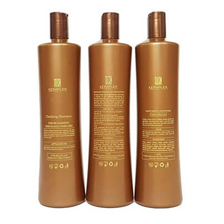حجم هر قوطی: 800 ml محتویات شامل یک شامپو ، یک محلول کراتین و یک ماسک مو می باشد که هر یک به حجم 800 میلی لیتر میباشد. روش صحیح استفاده موها را به خوبی به وسیله ی شامپوی موجود در پک شستشو داده و پس از آبکشی موها را تا حدود 80% به وسیله ی سشوار خشک نمایید. موها را به دسته های 1 تا 2 سانتیمتری تقسیم کرده و دسته ها را به محلول کراتین توتانات آغشته نمایید. به مدت 10 دقیقه منتظر بمانید و پس از آن موها را به وسیله ی سشوار و برس خشک نمایید. پس از خشک کردن موها آنها را به وسیله ی یک اتوی مو صاف نمایید. هر دسته از موها را در حدود 3 مرتبه با اتو صاف کنید (برای موهای ضخیم از دمای 210-200 درجه ، برای موهای طبیعی 200-190 درجه و برای موهای رنگ شده از دمای 160-180 درجه استفاده نمایید )مجدد موها را با شامپو شستشو دهید. رطوبت موها را گرفته و آنها را به ماسک موی توتانات آغشته کنید پس از 5 دقیقه موها را آبکشی کرده و از موهای صاف و زیبای خود لذت ببرید. کراتین موی کراپلکس keraplex یک پک کامل و موثر در درمان قطعی خشکی ، شکستگی و وز مو می باشد که به طور 100% از کراتین گیاهی تهیه گردیده و فاقد فومالدئید ها گازهای سمی می باشد. ساخت کشور برزیل بوده و در بسیاری از کشورهای جهان به ویژه در امریکا و اروپا نظر بسیاری از آرایشگران حرفه ای و ساله های زیبایی طراز اول را به خود جلب نموده است. یکی از ویژگی های منحصر به فرد این کراتین مو زمان بسیار کمی است که از مصرف تا مشاهده ی نتیجه طول می کشد. به عبارتی تنها یک ساعت و یا کمتر از یک ساعت زمان نیاز است تا تغییری عظیم را در بهبود موها مشاهده نمایید.