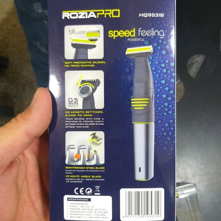 استفاده به صورت خشک و مرطوب و زیردوشی تکنولوژی اصلاح بصورت برش مستقیم اندازه اصلاح 0.0 میلی متر جنس تیغه ها استیل ضد زنگ مقاوم در برابر شستشو کامل ضد آب منبع تغذیه باتری قابل شارژ . باتری قلمی شارژ کامل 2 ساعت قابلیت استفاده تا 55 دقیقه قدرت 3 وات ورودی : 5v اقلام همراه ماشین تریمر روزیا کابل USB برس تمیز کننده سری قابل تنظیم سایز سری ها 1 میلی متر ٬ 2 میلی متر ٬ 4 میلی متر و 6 میلی متر