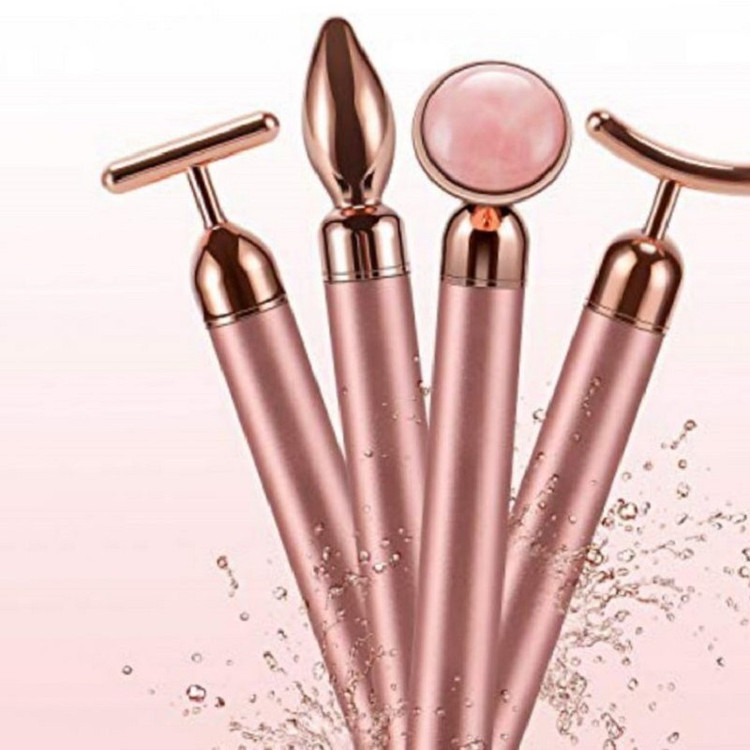 سفت کننده پوست حذف کیسه زیر چشم افزایش جریان گردش خون در قسمت مورد نظر بهبود و افزایش زاویه وی صورت کانتورینگ صورت شما گونه سازی عالی بهبود رنگ پوست صورت بهبود خطوط ظریف صورت (کاهش خطوط پنجه کلاغی ) 1 عدد ماساژور کوارتز دور حلقه ای برای ماساژ صورت 1 عدد ماساژور غلتکی صورت سر قطره ای 2 عدد ماساژور صورت Tشکل 1عدد کیف قابل حمل 1 عدد دفترچه راهنما یا همان (دستورالعمل) ماساژور صورت برقی ویبراتا پوست صورت شما را ماساژ خواهد داد و با ماساژ پوست ، گردش خون شما را افزایش می دهد ، و به این ترتیب پوست شما سفت و لیفتینگ خواهد شد. روند کلاژن سازی پوست شما را تسریع می بخشد و سبب پر شدن چین و چروک پوست شما خواهد شد. شما می توانید با استفاده از این محصول خطوط ریز اطراف لب خود را صاف کنید و فرم دهی به صورت نیز از ویژگیهای بارز قلم ویبراتور است. این میله طلایی می تواند بسیاری از مشکلات پوستی مانند ریزش صورت شلی پوست ، چین و چروک ، کیسه های چشم ، ملانین و بد رنگی را برطرف سازد.