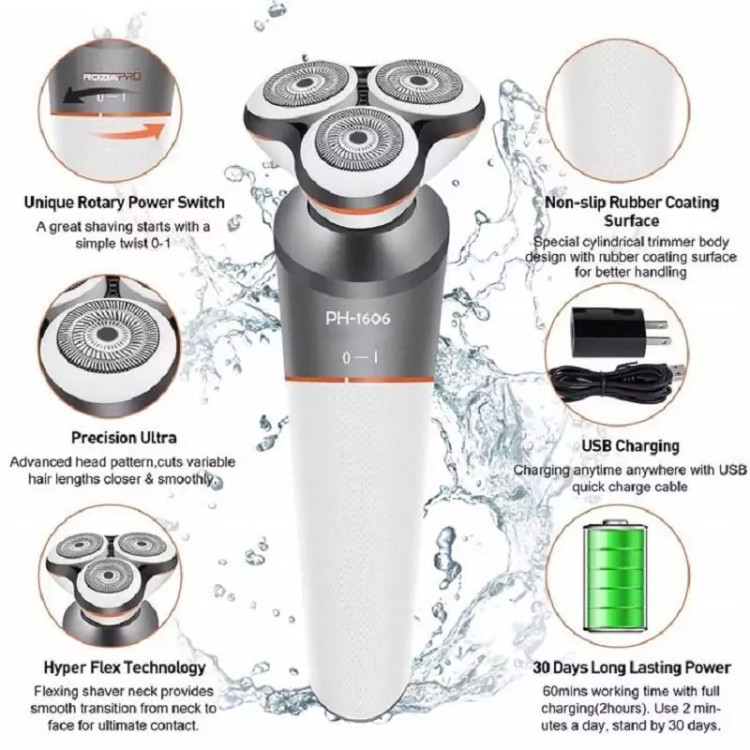 شامل 5 سری چرخشی: سری اصلاح ریش سری اصلاح موهای سر و صورت سری موزن گوش و بینی سری اصلاح موهای بدن یک عدد شانه با امکان تغییر سایز از 1 میلی متر تا 20 میلی متر ویژگی ها : تکنولوژی اصلاح ریشتراش ، برش مستقیم، برش چرخشی جنس تیغه از استیل پیشرفته و ضد زنگ ساخت کشور هلند با قابلیت اصلاح با شماره صفر بدون قابلیت خط زنی قابل استفاده به صورت خشک و مرطوب قابلیت شستشو و ضد آب منبع تغذیه از باتری قابل شارژ (بی سیم)