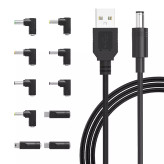 کابل برق 5 ولتی USB به DC IBERLS، سیم شارژ جک 21 میلیمتری جک جهانی 55 21 میلیمتری با 10 سر اتصال (55x25، 48x17، 40x17، 40x135، 35x135، 30x 01، 25x07، Micro USB، Type-C، Mini USB)