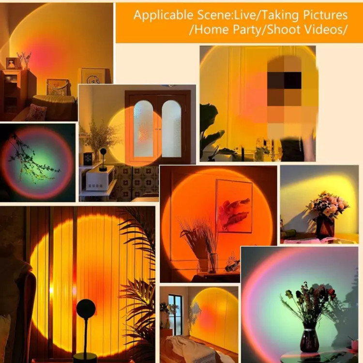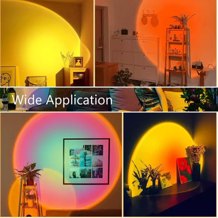 چراغ غروب آفتاب چند رنگی 4 رنگاین نور پروژکتور غروب آفتاب در رنگ های مختلفی از جمله نارنجی گرم مورد علاقه مردم و قرمز غروب آفتاب عرضه می شود و روشنایی آن را می توان با توجه به نیاز شما تنظیم کرد. می توان از آن برای تزئین اتاق و عکس برداری استفاده کرد و همچنین می تواند نیازهای نور را برطرف کند