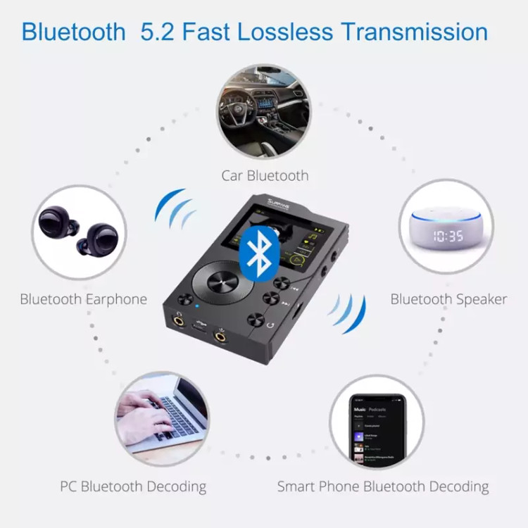 صدای بدون اتلاف: پخش کننده موسیقی بدون اتلاف از PCM510xA 2.1 VRMS پیشرفته، تراشه DAC استریو صوتی 112/106/100 دسی بل، با حداکثر نرخ نمونه برداری 44.1¨C384 کیلوهرتز /32 بیت استفاده می کند. پشتیبانی از تمام فرمت های اصلی موسیقی بدون افت: FLAC، WAV، WMA، M4A، MP3، MP2، AAC، APE، ALAC، OGG، AIFF، DFF، Native DSD64 (2.8MHz) DSD 128(5.6MHz) و غیره