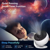 تایمر بدون صدا و خاموش شدن خودکاراین نور کهکشانی پروژکتور ستاره ای هیچ صدایی در حین کار ایجاد نمی کند. هرگز نگران فراموش کردن خاموش کردن پروژکتور فضایی نباشید، زیرا دارای عملکرد خاموش شدن زمان بندی است. لامپ گلکسی می تواند یک محیط خواب گرم و آرام ایجاد کند تا به شما و فرزندتان کمک کند به خواب بروید. توجه داشته باشید که چرخش تصویر پیش بینی شده کمی کند است که به طور خاص برای شبیه سازی چرخش واقعی آسمان پرستاره طراحی شده است.