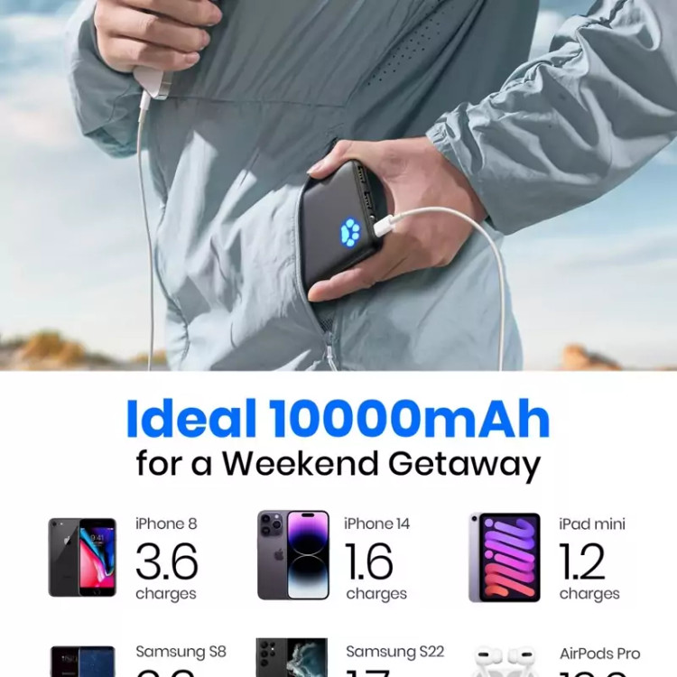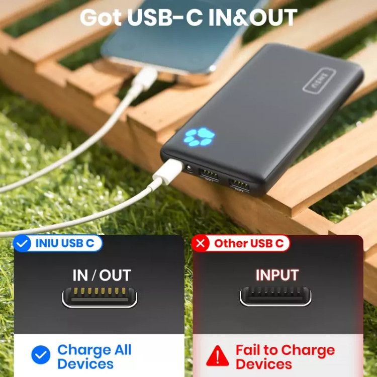 شارژراابل حمل INIU، باریکترین پاوربانک 10000 میلی آمپر ساعتی 5 ولت/3 آمپر، بسته باتری شارژ پرسرعت ورودی و خروجی USB C، پاوربانک خارجی تلفن سازگار با iPhone 14 13 12 11 Samsung S22 S21 Google LG iPad و غیره