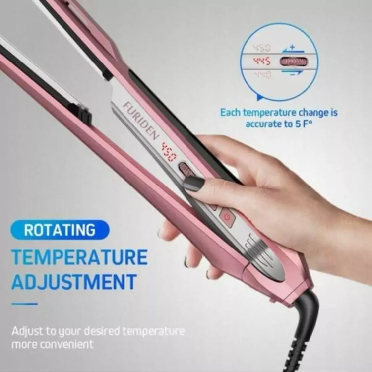 استفاده آسان: اتو مو بخار FURIDEN دارای 38 درجه حرارت قابل تنظیم بر روی یک صفحه نمایش دیجیتال LED است، هر تغییر دما با غلتک کنترل تنها 5 درجه است، شما می توانید حالت دقیقی را انتخاب کنید که مناسب موهای خود راحت تر و آسیب کمتری داشته باشد.