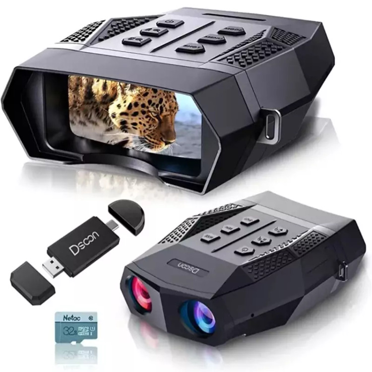عینک دید در شب دوربین دوچشمی دید در شب برای تاریکی کامل - عینک دیجیتال مادون قرمز ویدئویی 1080P برای شکار و ماجراجویی و کمپینگ با کارت خوان/ کارت 32 گیگابایتی TF